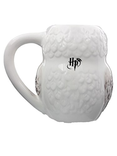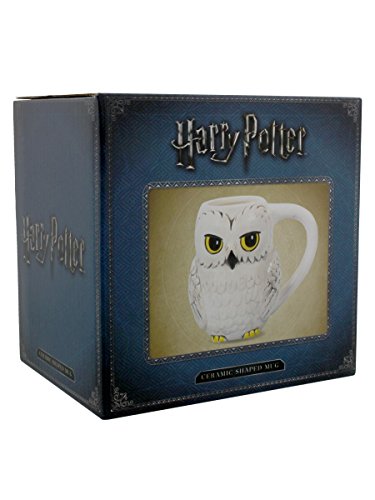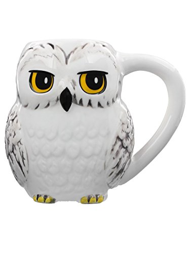 Diese 3D-geformte Harry Potter-Tasse ist geformt, um die Form von Harrys loyaler Eule Hedwig zu sein, und ist dementsprechend detailliert gemalt. Mit gelben Augen und Krallen, geprägten Federdetails und dem Harry Potter Logo auf der Rückseite.