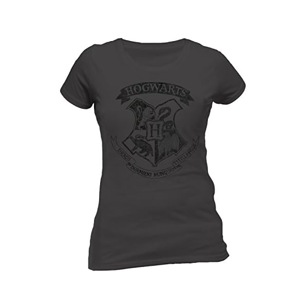 Harry Potter Distressed Hogwarts T-Shirt für Damen in dunkelgrau aus 100% Baumwolle. Offiziell lizenziertes Produkt.
